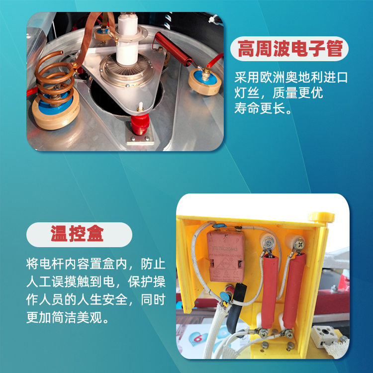 1、采用國際大品牌原裝OMROM(歐姆龍)繼電器及臺灣正宗CKC時間制,能保證機器長時間的頻率工作,并大大延長機器壽命,減少機器故障。