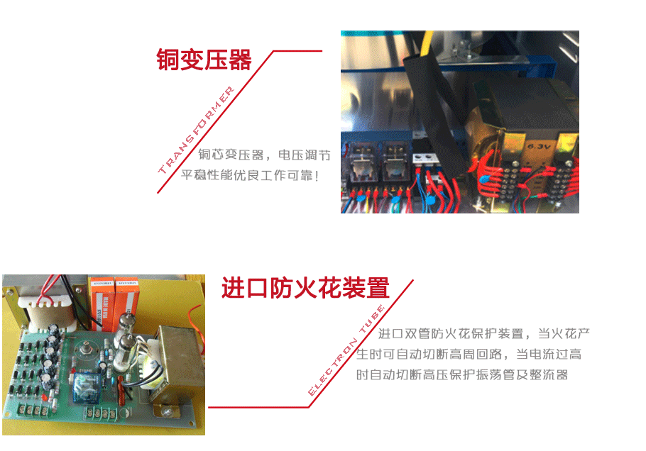 2.高靈敏火花過流保護回路,可自動切斷高周壓制火花,保護模具