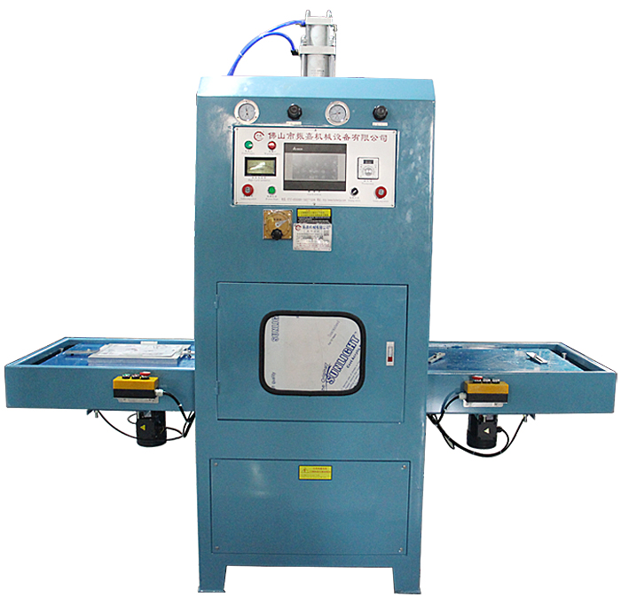 高頻熔斷機的工作原理是利用高頻先熔接再通過機器配有的壓力裝置同時切斷。因為是同時完成,所以稱為高周波同步熔斷機。也稱為高周波熔斷機、熔斷機、高周波同步裁斷機、高周波裁斷機。主要適用于APET、PETG、GAG環保材質的雙面吸塑泡殼的封口包裝、吸塑紙卡包裝、牙刷包裝、手機皮套/平板電腦皮套一次成型、皮墊壓邊裁斷成型,以及EVA布類皮革、真皮、OPP、PU、表帶、吊帶、熱水袋、保暖袋等。
