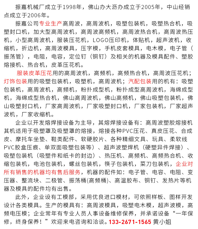 2、高頻機(jī)開機(jī)電源燈亮,熱合電磁閥能夠吸合,但不能熱合,開蓋測高壓整流電路正常,濾波電感沒有問題,電子管燈絲亮度正常,故障部位集中在了阻容振蕩電路上了,斷電測量柵極電阻正常,測量兩只高壓振蕩電容有出現(xiàn)漏電現(xiàn)象,說明振蕩條件破壞,電容被擊穿,不能產(chǎn)生高頻電場,更換耐壓電容后,高周波熱合機(jī)正常,即故障排除。以上就是我們針對高頻機(jī)不能熱合原因的兩種故障現(xiàn)象進(jìn)行排查及簡述。