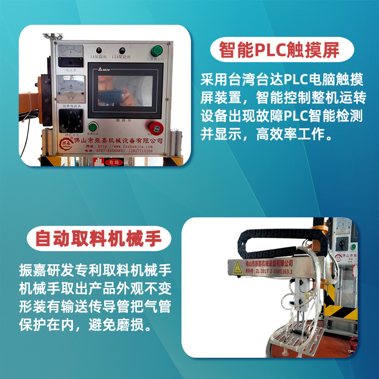 優勢:1.全自動吸塑封口機帶有拾取機械手機器可以配合流水線生產使用,是工廠企業降低成本、節省人工、提高效益的好幫手。
