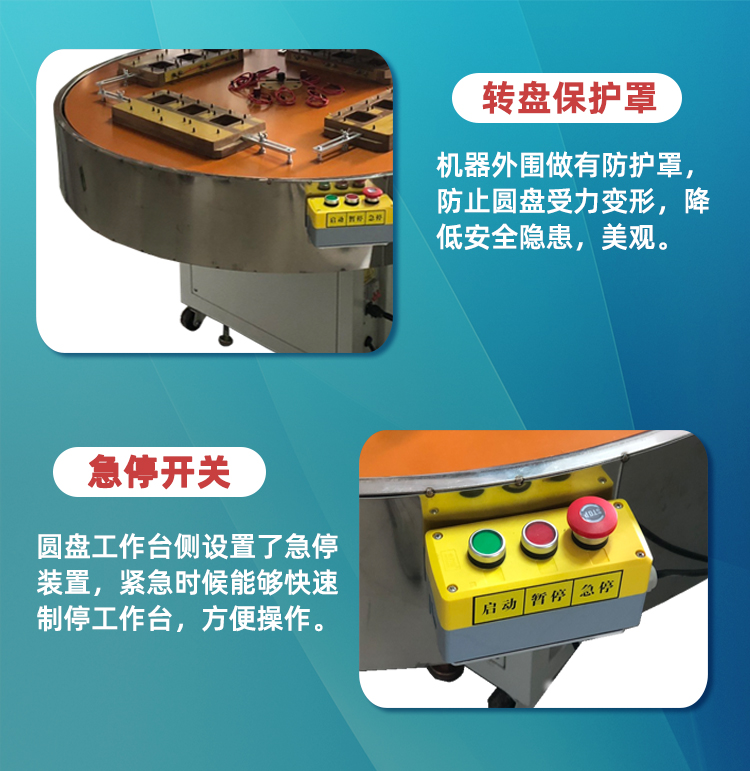 ②伺服電機控制轉盤,模具邊上可以放一疊紙卡,方便工人能快速放進模具,大大提高生產效率。普通電機控制的轉盤,模具邊如果放紙卡就會把紙卡沖走轉位。