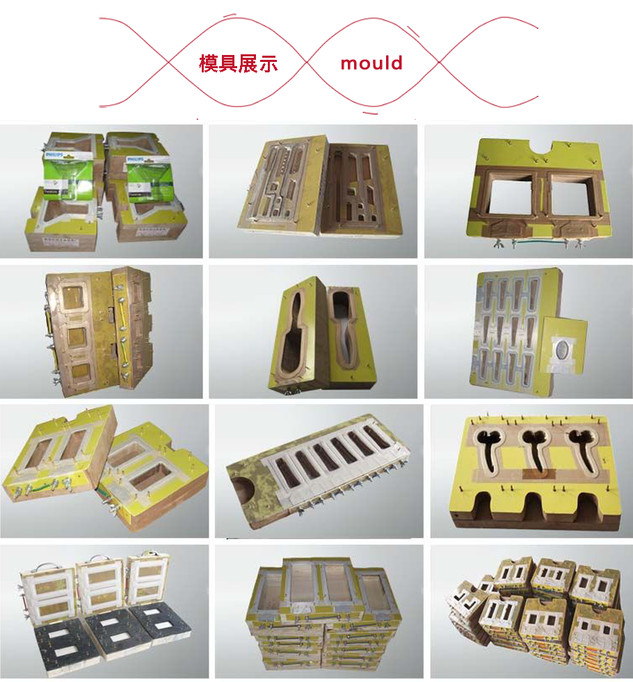 全自動吸塑包裝機利用脈沖發熱原理(36V電壓使電木模具發熱)根據工件大小(熱合面積)選擇不同電流輸出及通電時間,然后在冷卻加壓情況下完成熱合包裝。我司可定做(費用另計),以下為模具展示。